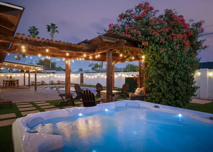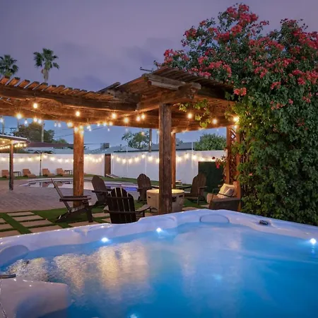 Located approximately a 25-minute stroll from Casino Arizona, Party At The Palm - Pool, Hot Tub, Pergola With Fire Pit & Much More Scottsdale villa offers a casino for guests' entertainment.